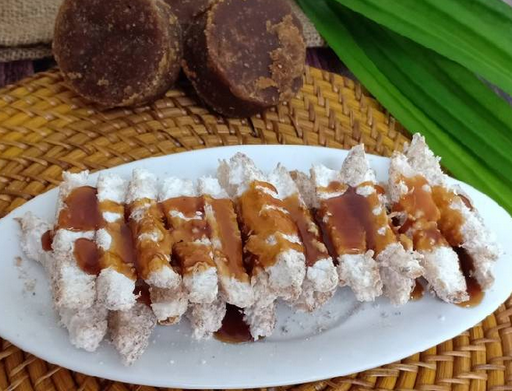 Cairkan gula merah dengan air secukupnya. Tambahkan campuran sagu+air. Aduk2 sampai mengental. SisihkanCampur Kelapa, sagu, dan air kelapa. Tambahkan sejumput garam